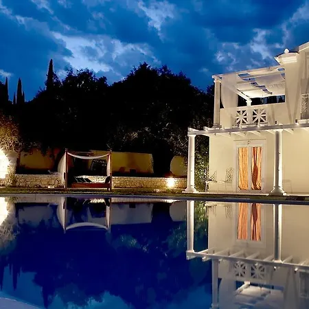 Kuchnia w 7-pokojowej willi wyposażona jest w czajnik elektryczny, lodówkę i przybory kuchenne. Willa Castello Di Vista leży 22 min jazdy samochodem od lotniska Korfu.